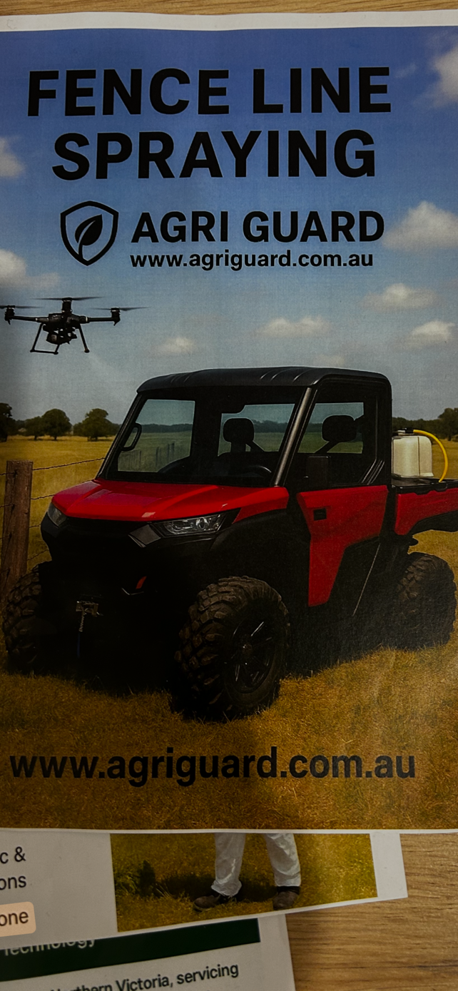 The idea for AgriGuard Weed Control Services started on the backroads of Sugarloaf Creek, Northern Victoria, where farmer Gab and his wife Melissa battled Paterson’s curse and serrated tussock. Frustrated with traditional methods, Gab envisioned a smarter, more sustainable approach. In 2023, AgriGuard was born, combining ground-based precision spraying with drone-assisted treatment. Our motto? “Guard the Land. Grow the Future.”